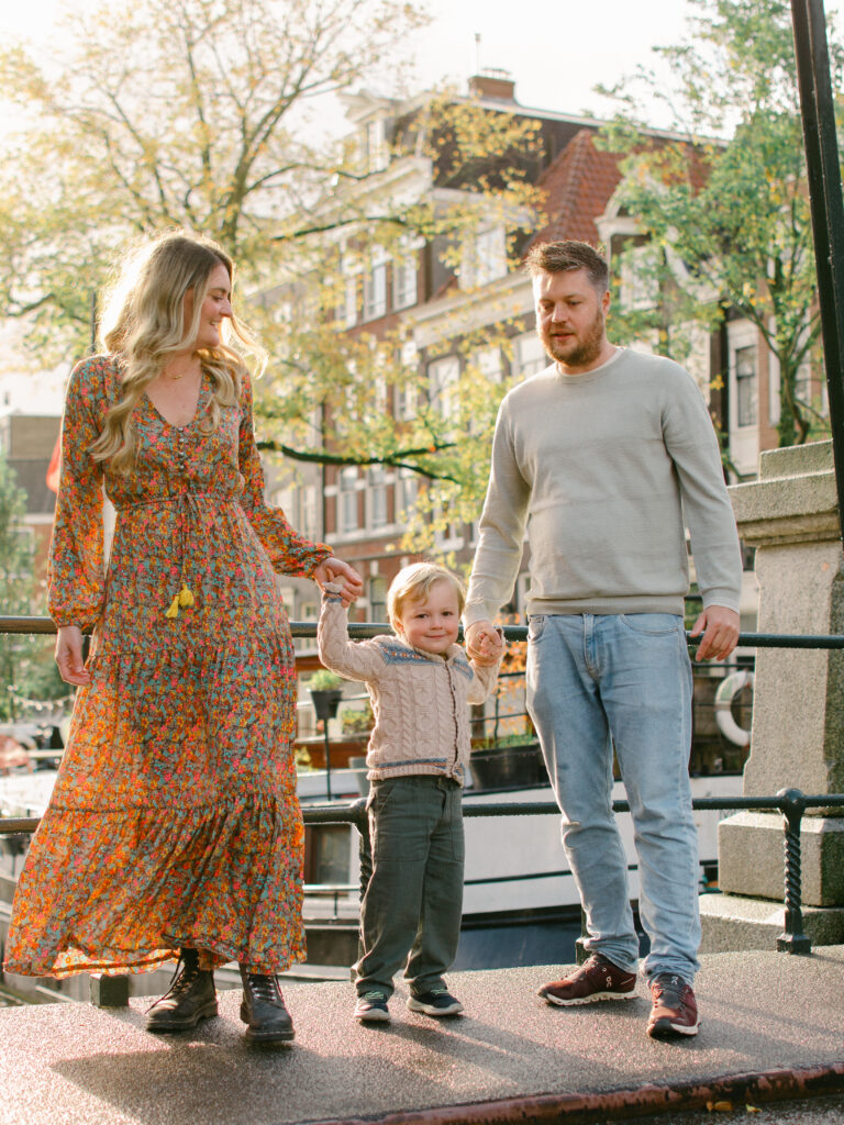 This family of three chose Jordaan for its cozy charm and beautiful canals, and the result was a relaxed, joy-filled session. We wandered through leafy alleyways, paused on bridges, and let son run back and forth between us, all while capturing a mix of posed portraits and spontaneous moments. The entire experience was led by the light — warm, welcoming, and full of movement.