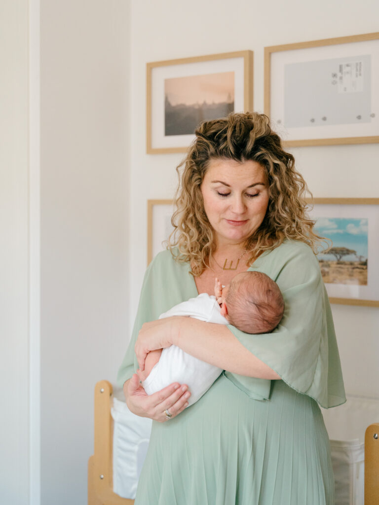 Looking for a Newborn Photographer in Utrecht? Your Utrecht Newborn photos should be an easy, handled-for-you experience. One where I show up to your home on the day of our session with everything we need for your photoshoot. I have beautiful Client Closet dresses for mom, neutral outfits for baby, and natural and timeless blankets and basinets.
